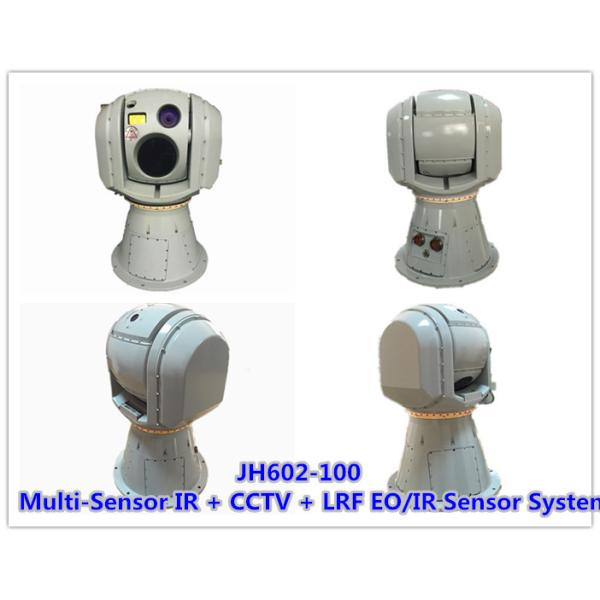 Multi-Sensor IR + CCTV + LRF Electro-optical (EO/IR) Sensor System is equipped with a high resolution LWIR uncooled thermal camera with 100mm lens, a day light camera and a 5Km laser range finder for detection, recognition, identification, aiming and ranging target at day and night, as well as provide real-time target azimuth, elevation, distance and video information.